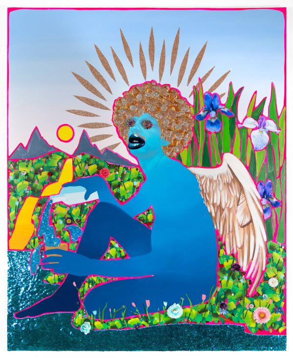Devan Shimoyama is a contemporary African American mixed-media painter inspired by Black, queer, and male bodies. Shimoyama explores themes of mythology and folklore, using his artwork to examine the intersections of race, class, gender, and sexuality within everyday life.