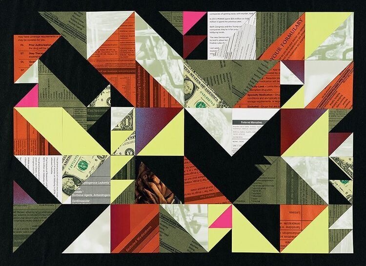 Katy: “Access to medicines is an issue that finds its way into many of our healthcare stories. It is clinical, personal, and political. Made in the spirit of public health and medical humanities, these mixed media collages reference formulary exclusions, pharmaceutical industry lobbying, and the skyrocketing cost of prescription drugs. We can do better. Really.”