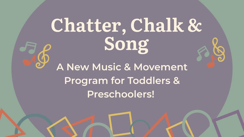 Join us for joyful, engaging classes where little ones grow through music, movement, and play. Chatter, Chalk & Song is designed to support early learning, socialization, and a love for music, all while having fun!
