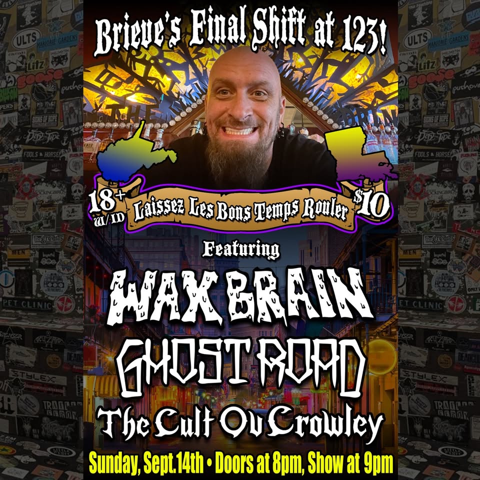 Party & rock out with us for Brieve’s final shift at 123 Pleasant Street. After 15 years, he’s moving from West Virginia to New Orleans. We’ve got some of his favorite bands lined up to send him off in style!