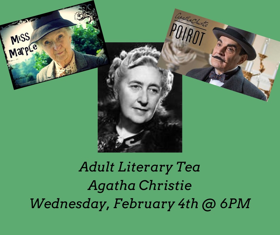 This Literary Tea-vent will focus on the key characters of Agatha Christie. Outsold only by the Bible and Shakespeare, Agatha Christie is the best-selling novelist of all time. She is best known for her 66 detective novels and 14 short story collections, as well as the world’s longest-running play – The Mousetrap. To round out the evening we will have some trivia and activities.
