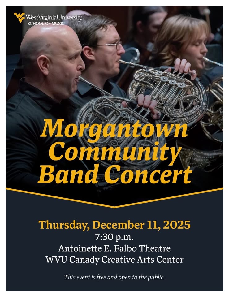We invite you to join us this Thursday at 7:30pm (doors will open around 7:15pm) in the Falbo Theatre of the Canady Creative Arts Center for the Morgantown Community Band’s Winter Concert!
