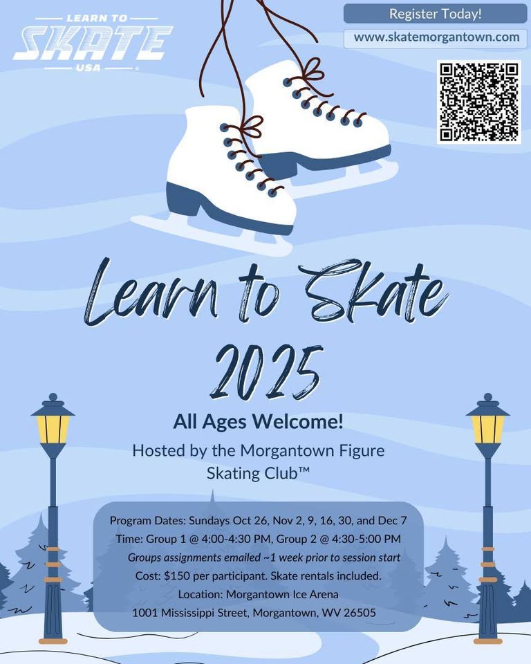 Register today at https://www.skatemorgantown.com/learn-to-skate