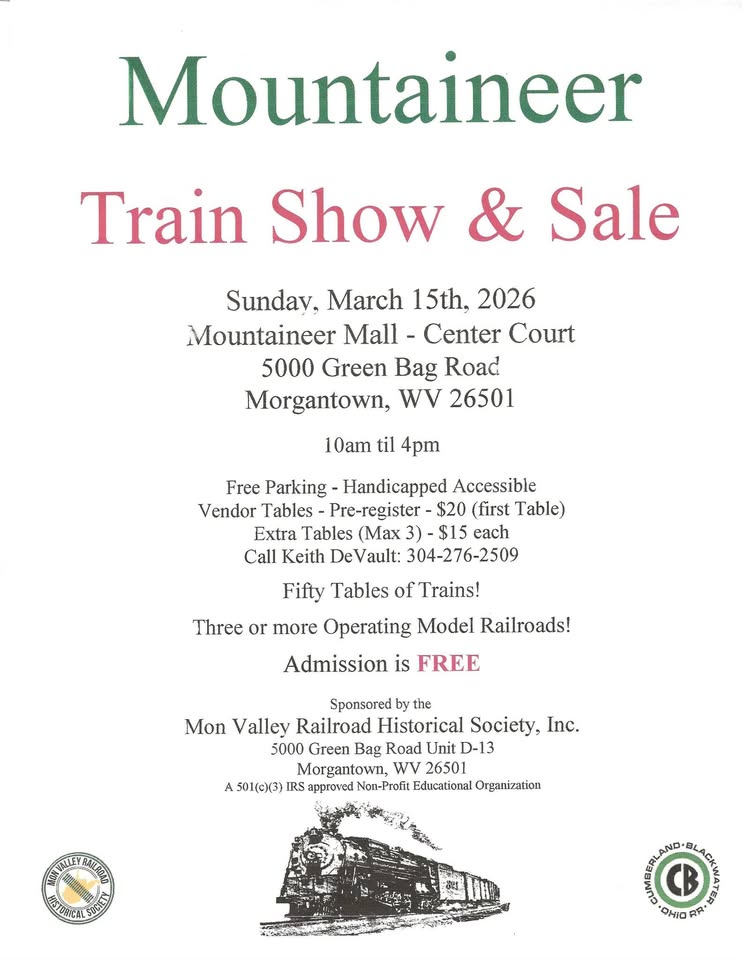The FIRST Train Show in Morgantown, WV is about one month away!! There are still tables available but, they are going quickly. Make your reservation Today! Admission is Free.