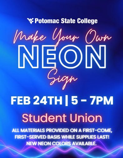 To register for this event please visit the following URL: https://cal.wvu.edu/event/psc-make-your-own-neon-sign-3890 →