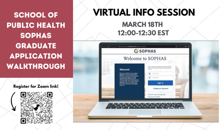 Have questions about the School of Public Health SOPHAS Graduate Application? This session is for you! Tips and Q & A time included.