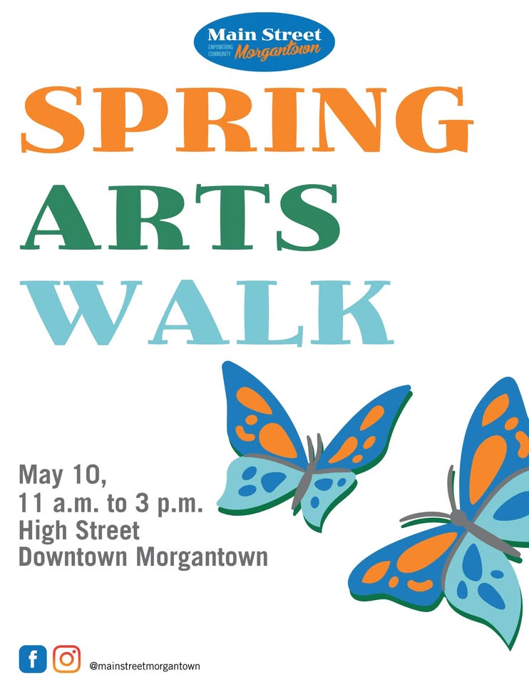 Join us for the opening event of our 2025 Arts Walk season! Spring Arts Walk will be held on the second Saturday of the month May 10, 2025, 11:00 a.m. – 5:00 p.m. in downtown Morgantown along High and adjacent streets.