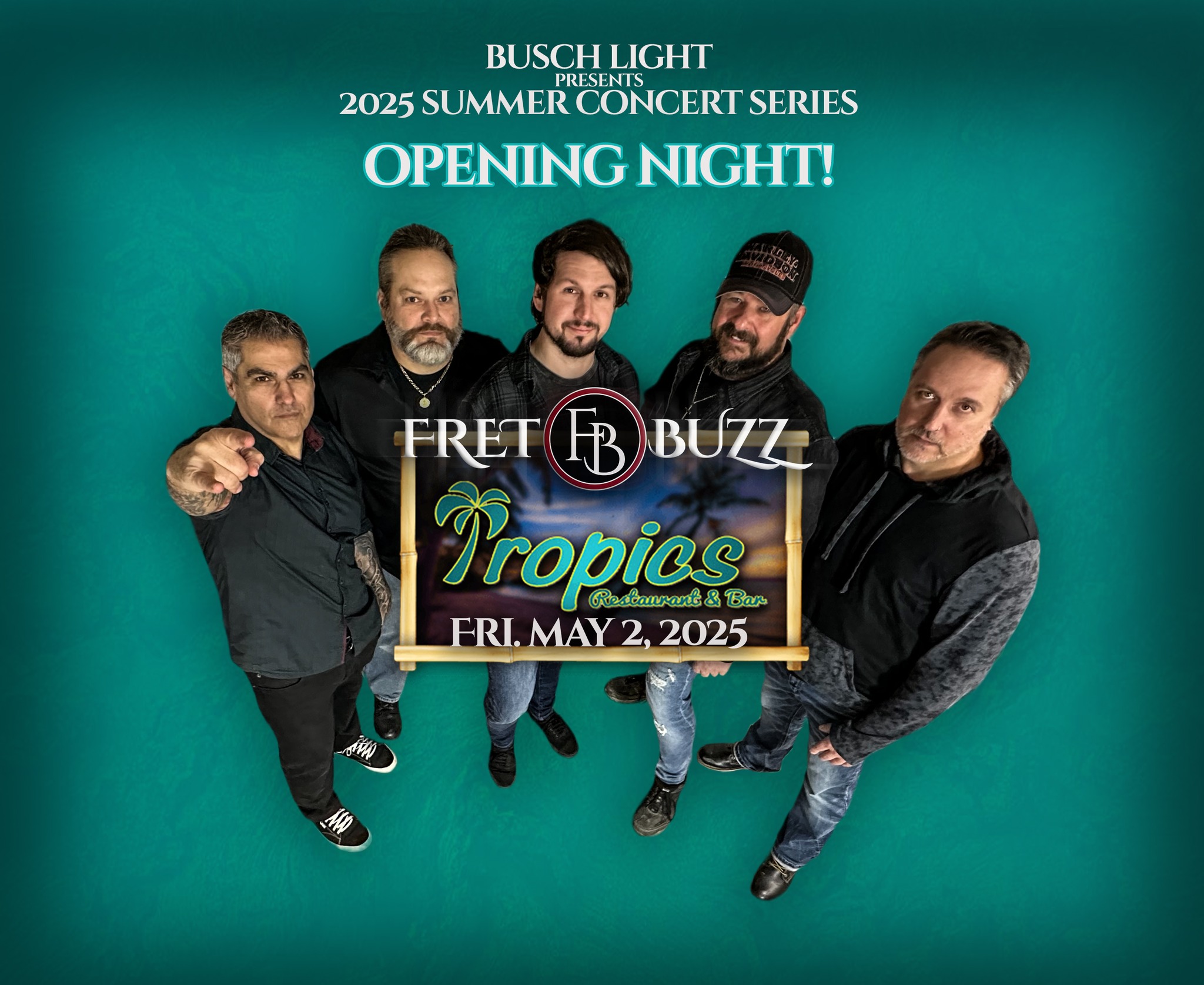 FRET BUZZ is back to open the 2025 Summer Concert Series at Tropics! We had some of the best times last year. Let’s do it even bigger and better this year, starting Friday May 2nd.