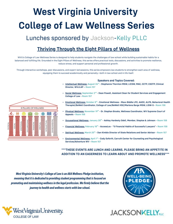 “Fostering Belonging in Law: Social Connection as a Pillar of Professional Well-Being” presented by Dean Jennifer Powell, Assistant Dean of Student Services and Engagement at the College of Law. This portion of the Wellness Series focuses on the Social Pillar within the eight pillars of wellness. Dean Powell will be sharing with our law students the importance of connection with others as well as experiencing a sense of belonging as it pertains to both professional and personal wellbeing. She will not only overview how social connection and belonging are vital elements in developing purpose, but she will also highlight resources both on and off campus that students can utilize to feel included, supported, and set them on their way to social wellness.