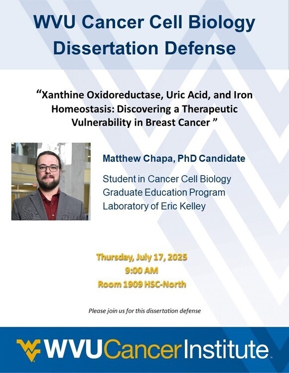 WVU Cancer Cell Biology Presents Matthew Chapa, PhD Candidate Dissertation Defense