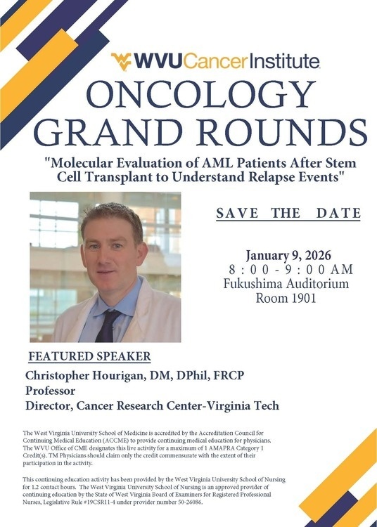 WVU Cancer Institute Oncology Grand Rounds presents Christopher Hourigan, DM, DPhil, FRCP